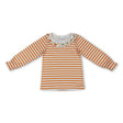 Long sleeves orange stripe bow ruffle girls fall shirt