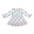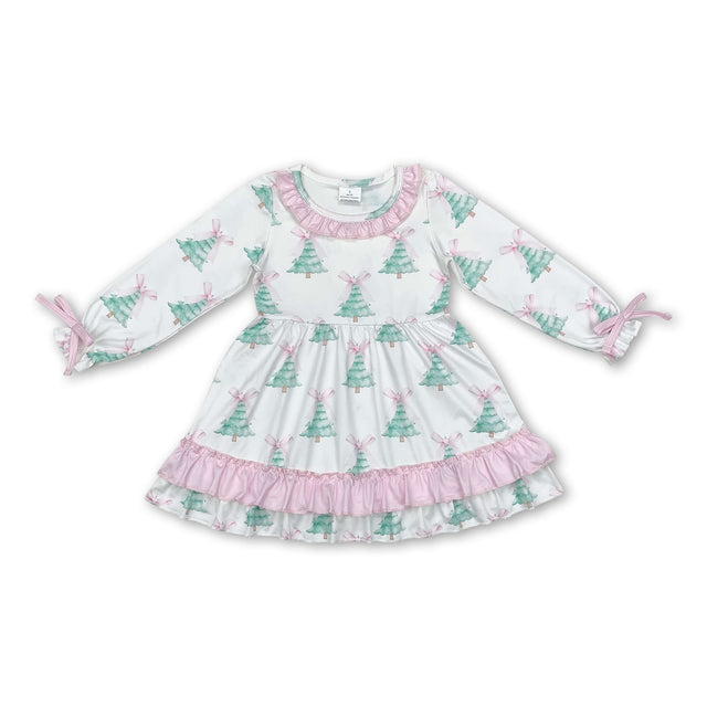 Long sleeves pink bow Christmas tree baby girls dress - 3-6M is backordered and will ship as soon as it is back in stock.