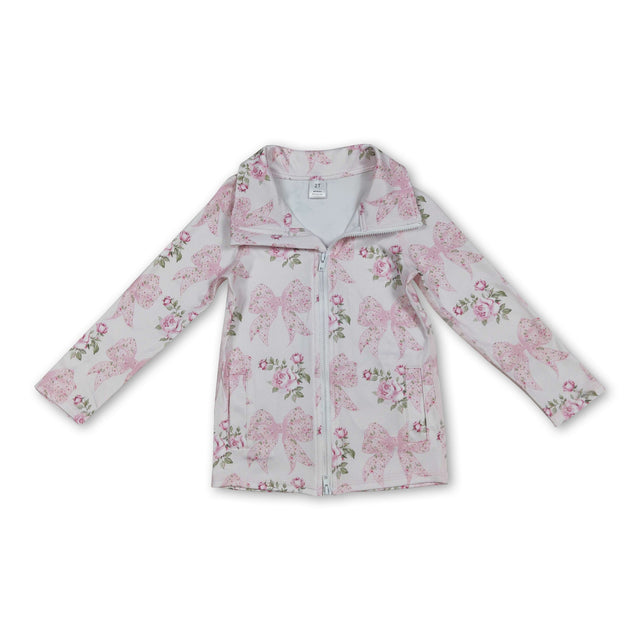 Long sleeves pink floral bow zipper girls yoga top - 3-6M is backordered and will ship as soon as it is back in stock.