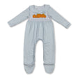 Long sleeves plaid pumpkin baby boy fall footed romper - 0-3M is backordered and will ship as soon as it is back in stock.