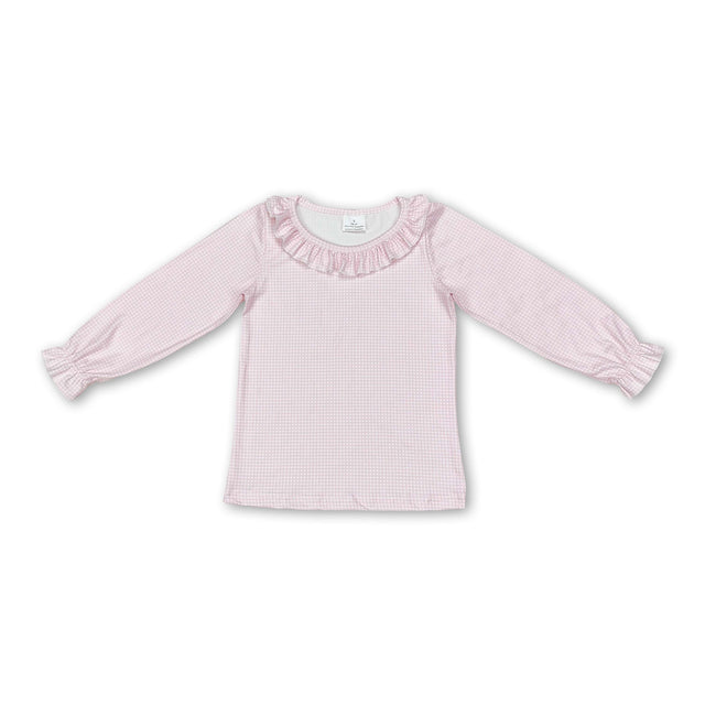 Long sleeves ruffle pink plaid baby girls shirt