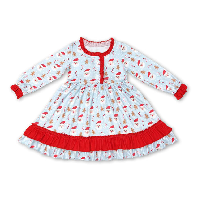 Long sleeves santa candy cane kids girls Christmas nightgown