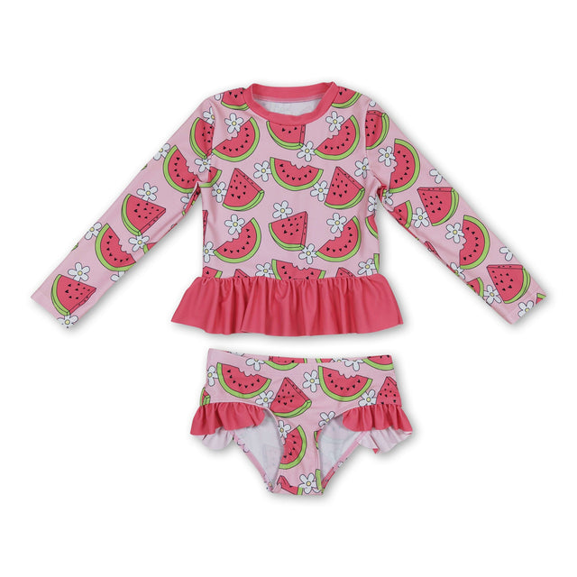 Long sleeves watermelon floral girls summer swimsuit - 3-6M is backordered and will ship as soon as it is back in stock.