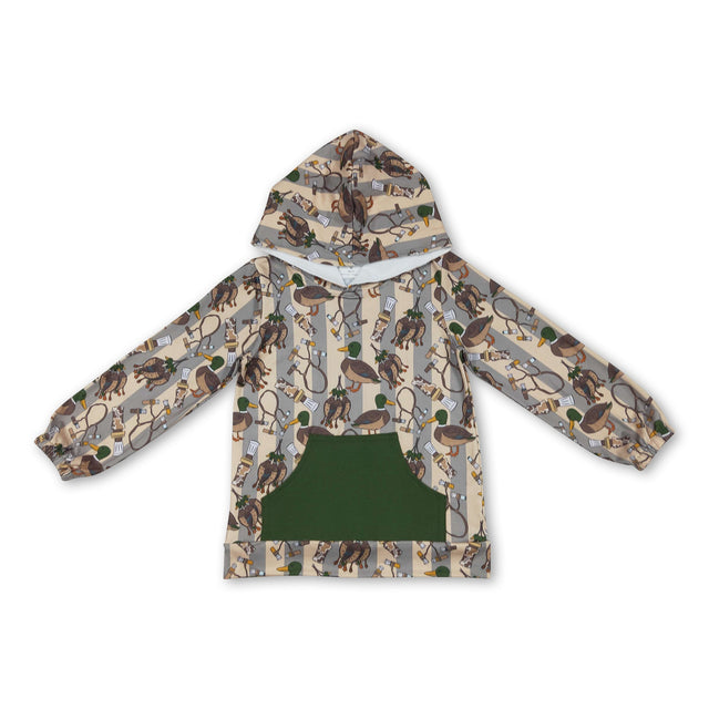 Olive pocket long sleeves duck kids boys hoodie