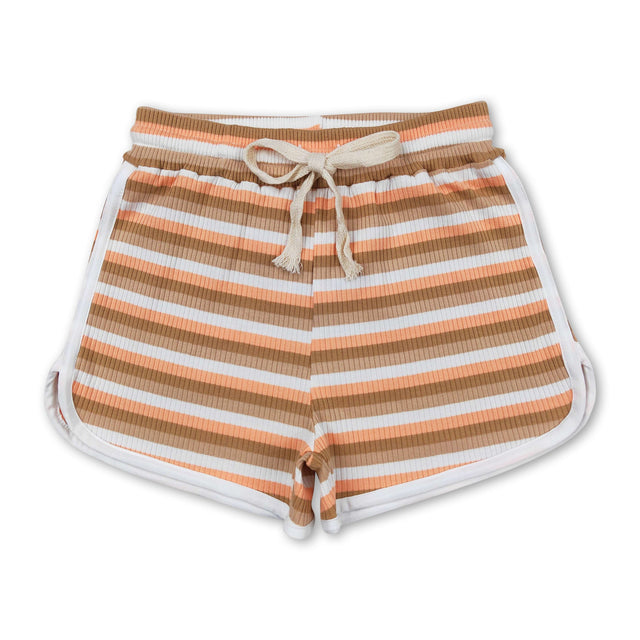 Orange brown stripe cotton toddler girls summer shorts