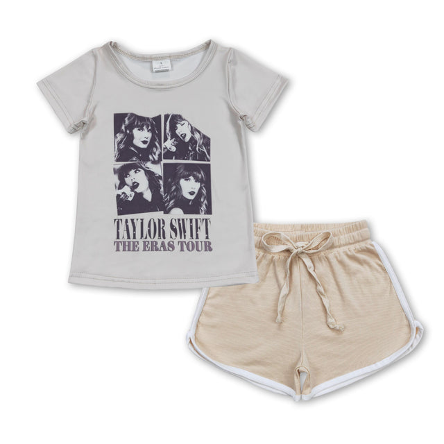 Patchwork top beige cotton shorts singer girls clothes - 12-18M is backordered and will ship as soon as it is back in stock.