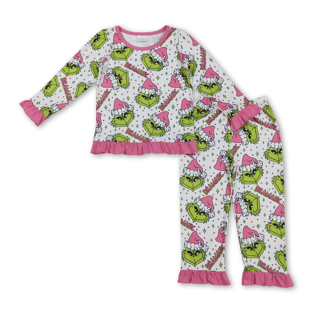Pink Christmas hat green face kids girls pajamas - 3-6M is backordered and will ship as soon as it is back in stock.