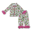 Pink fur green face girls Christmas button down pajamas - 3-6M is backordered and will ship as soon as it is back in stock.