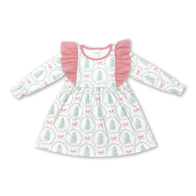 Pink long sleeves Christmas tree bow baby girls dresses - 3-6M is backordered and will ship as soon as it is back in stock.