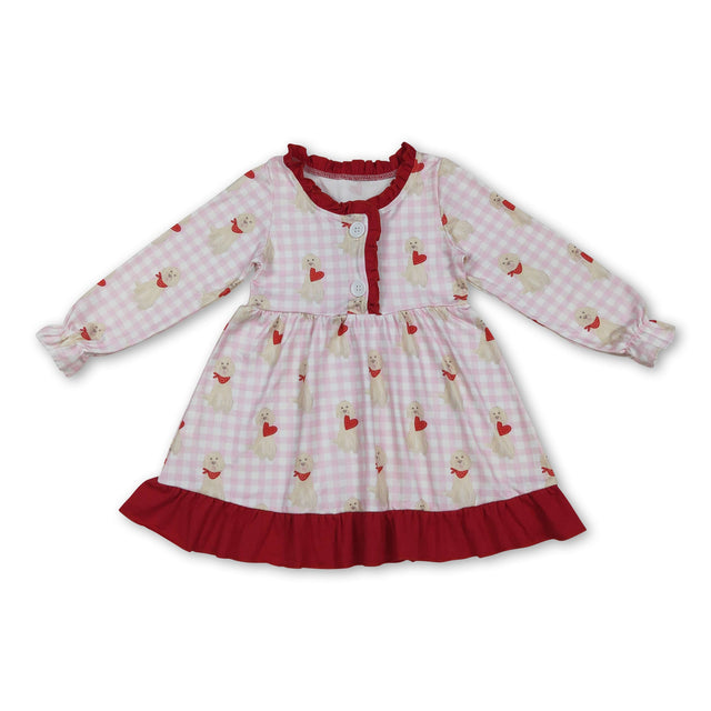 Pink plaid long sleeves heart dog girls valentine's night dress
