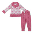 Pink plaid santa bow pullover ruffle pants girls Christmas set