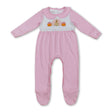 Pink pumpkin turkey baby girl Thanksgiving footed romper - 0-3M is backordered and will ship as soon as it is back in stock.