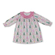 Pink ruffle long sleeves Christmas trees bow girls dress - 3-6M is backordered and will ship as soon as it is back in stock.