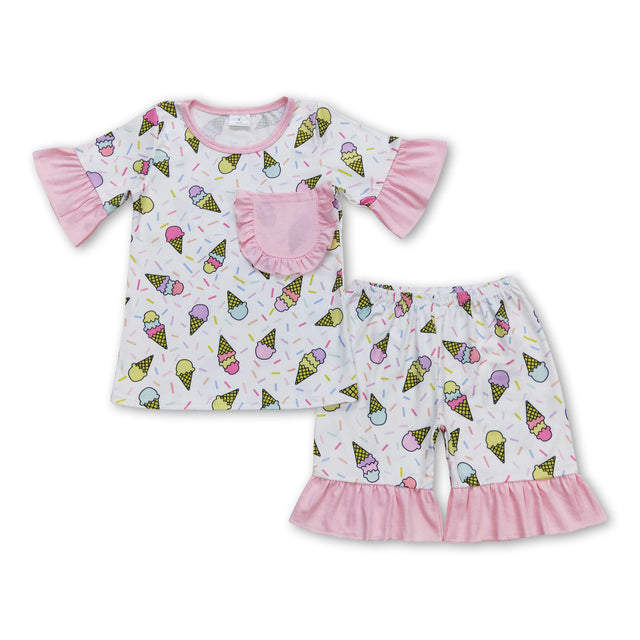 Pink short sleeves ice cream girls summer pajamas - 3-6M is backordered and will ship as soon as it is back in stock.