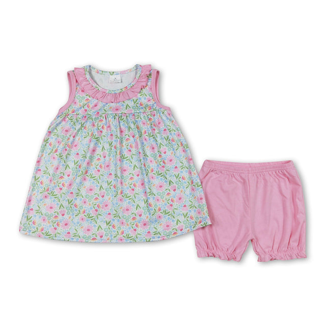 Pink sleeveless floral tunic ruffle shorts girls clothes