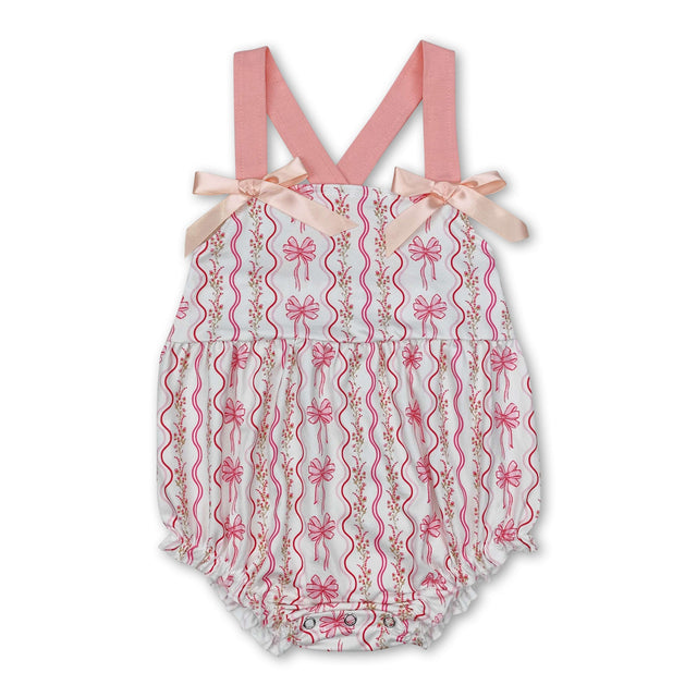 Pink straps bow floral baby girls summer romper - 0-3M is backordered and will ship as soon as it is back in stock.