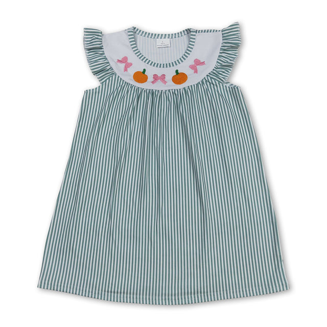 Pumpkin bow green stripe baby girls fall dresses - 3-6M is backordered and will ship as soon as it is back in stock.