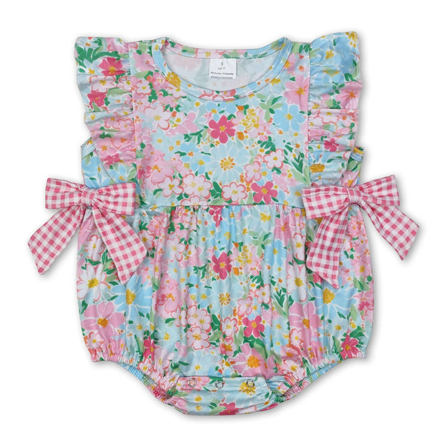 Ruffle floral pink plaid bow baby girls summer romper