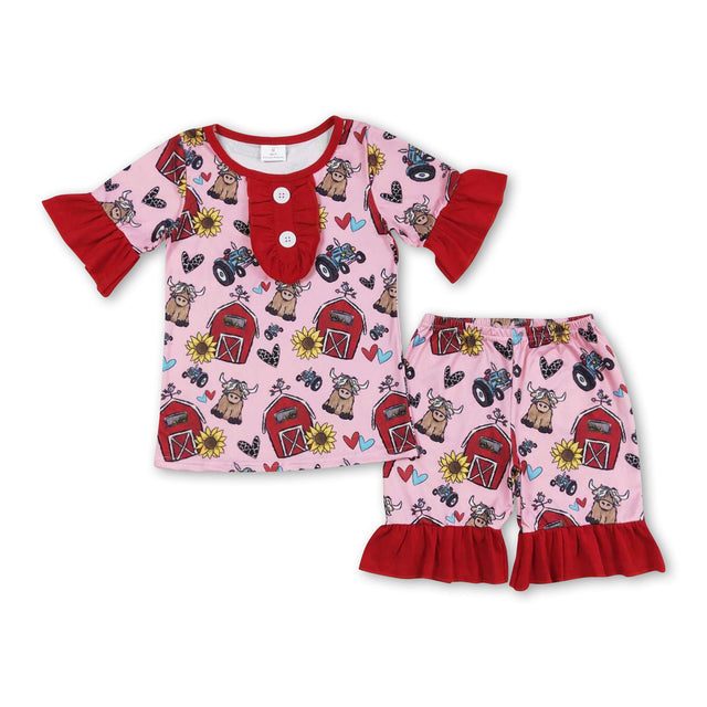 Short sleeves cows sunflower farm girls summer pajamas