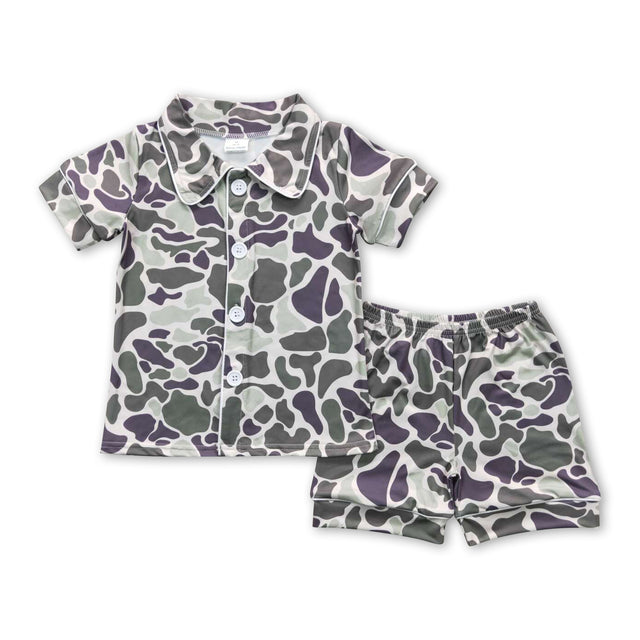 Short sleeves green camo kids button up summer pajamas