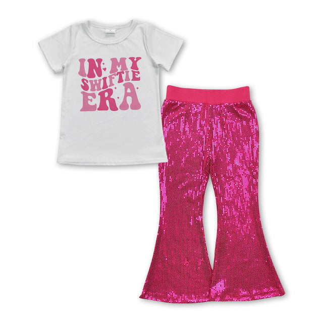 Short sleeves hot pink sequin pants singer girls clothes - 12-18M is backordered and will ship as soon as it is back in stock.