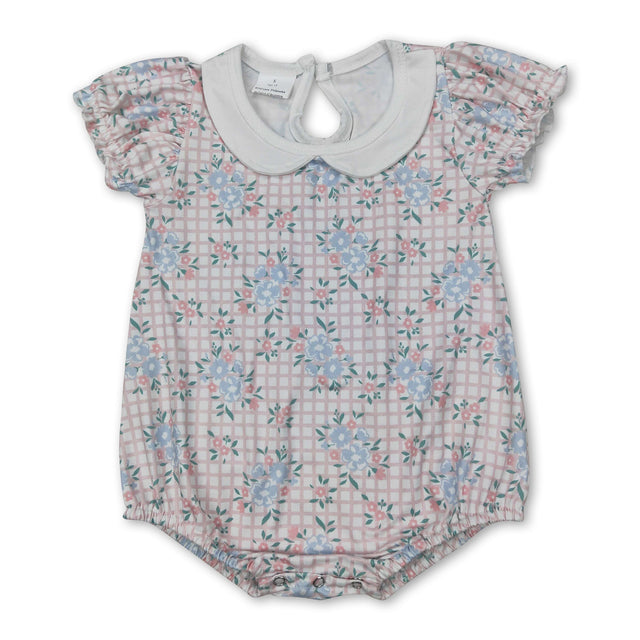 Short sleeves pink plaid floral baby girls romper - 0-3M is backordered and will ship as soon as it is back in stock.