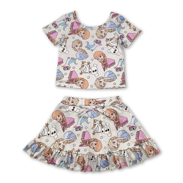 Short sleeves snow top skirt princess girls clothes