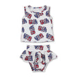Sleeveless USA floral baby girls 4th of july bummies set - 0-3M is backordered and will ship as soon as it is back in stock.