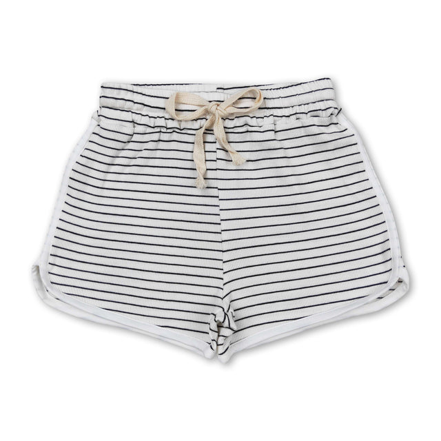 White black stripe cotton girls summer shorts