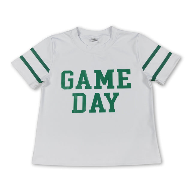 White green short sleeves game day kids girls activewear top - 3-6M is backordered and will ship as soon as it is back in stock.