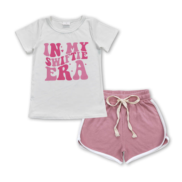 White letters top dark pink shorts singer girls clothes