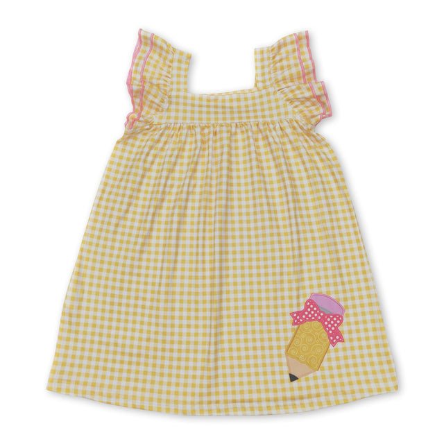 Yellow plaid flutter sleeves pencil girls back to school dress