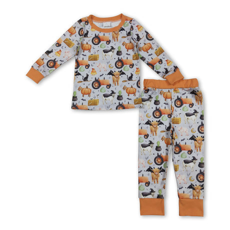 From $1800Unit price /UnavailableLong sleeves cows tractor pumpkin farm kids Halloween pajamas