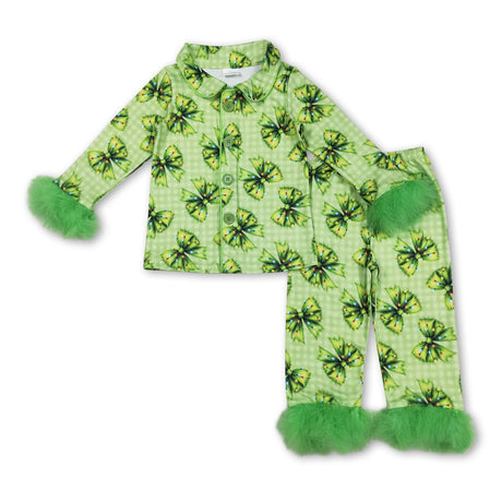 From $2800Unit price /UnavailableGreen face bow plaid girls Christmas button down pajamas
