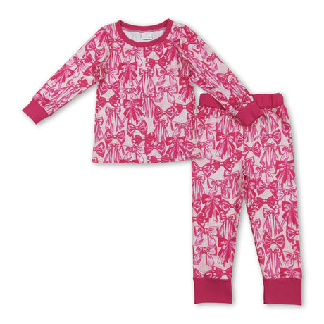 $1800Unit price /UnavailableHot pink bow long sleeves top pants kids girls pajamas