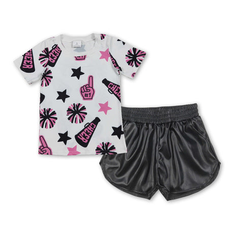 From $1700Unit price /UnavailableShort sleeves pink stars cheer top black shorts girls clothes