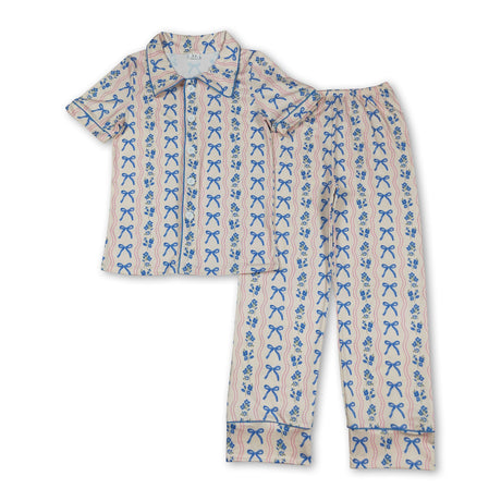 $3900Unit price /UnavailableShort sleeves blue bow floral kids girls button down pajamas