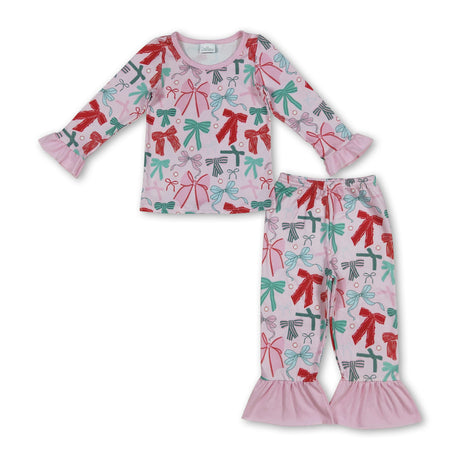 $1700Unit price /UnavailablePink long sleeves colorful bows girls Christmas pajamas