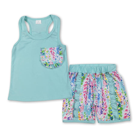 From $2000Unit price /UnavailableBlue ruffle floral bow tunic shorts girls summer outfits