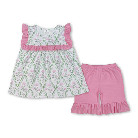 From $2000Unit price /UnavailableRuffle green pink floral tunic shorts girls summer outfits