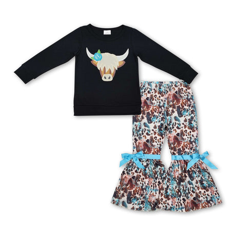From $2100Unit price /UnavailableBlack highland cow top bell bottom pants girls western clothes