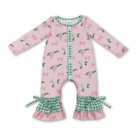 - Green plaid ruffle duck bow baby girls romper $1800Unit price /Unavailable
