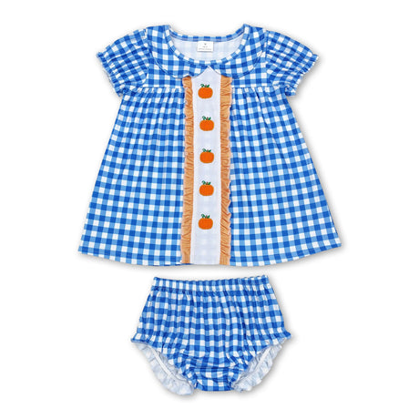 From $1800Unit price /UnavailableShort sleeves blue plaid pumpkin tunic bummies girls fall set