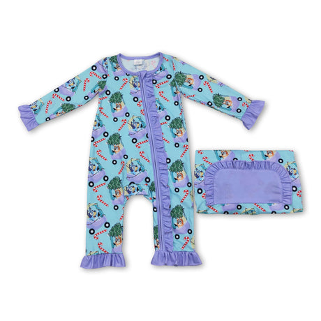 Dog Christmas tree candy cane baby kids zipper romper