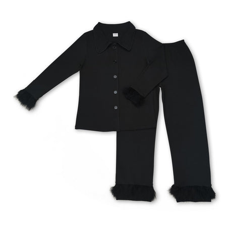 $4400Unit price /UnavailableBlack cotton fur ruffle kids girls button down pajamas