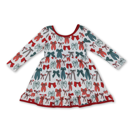 From $2800Unit price /UnavailableLong sleeves red green bow ruffle girls Christmas dresses