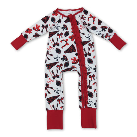 $1800Unit price /UnavailableLong sleeves red ruffle bow football baby girls zipper romper