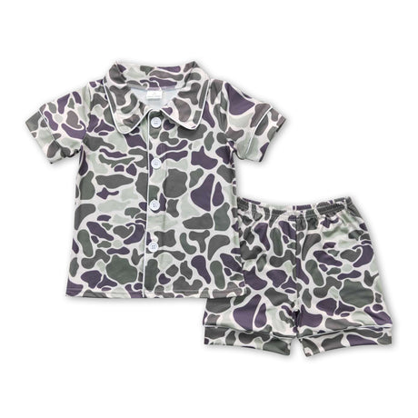 $1800Unit price /UnavailableShort sleeves green camo kids button up summer pajamas