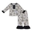Long sleeves ruffle firework girls Happy New Year pajamas