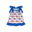 Blue straps heart flag kids girls 4th of july dresses